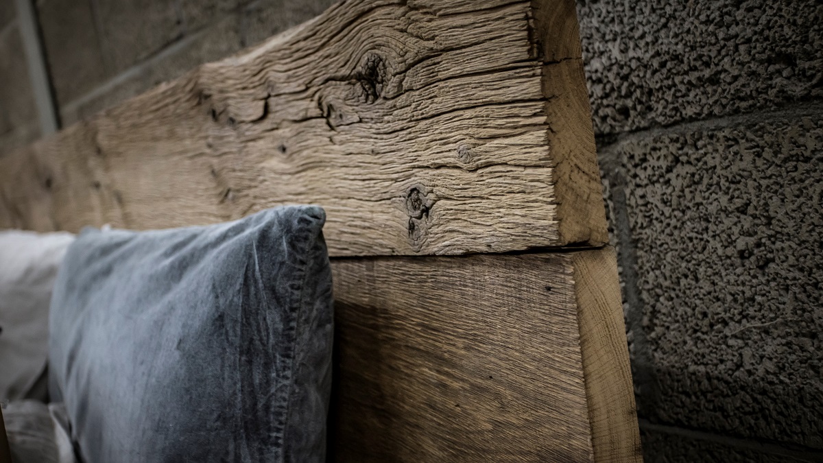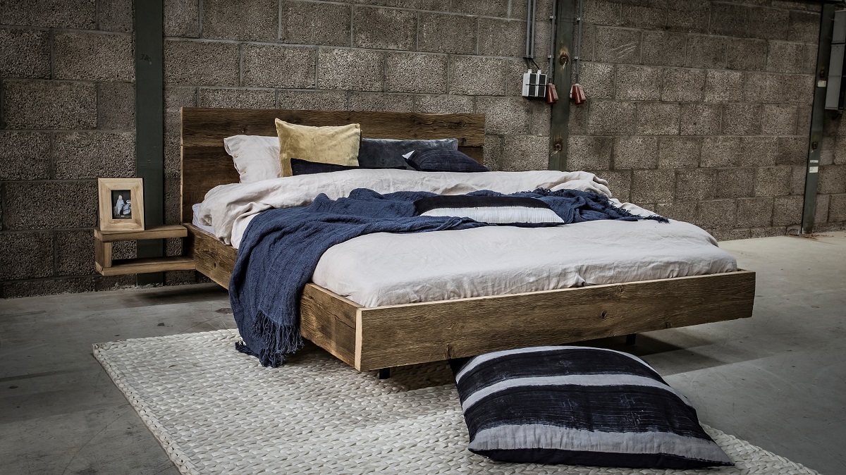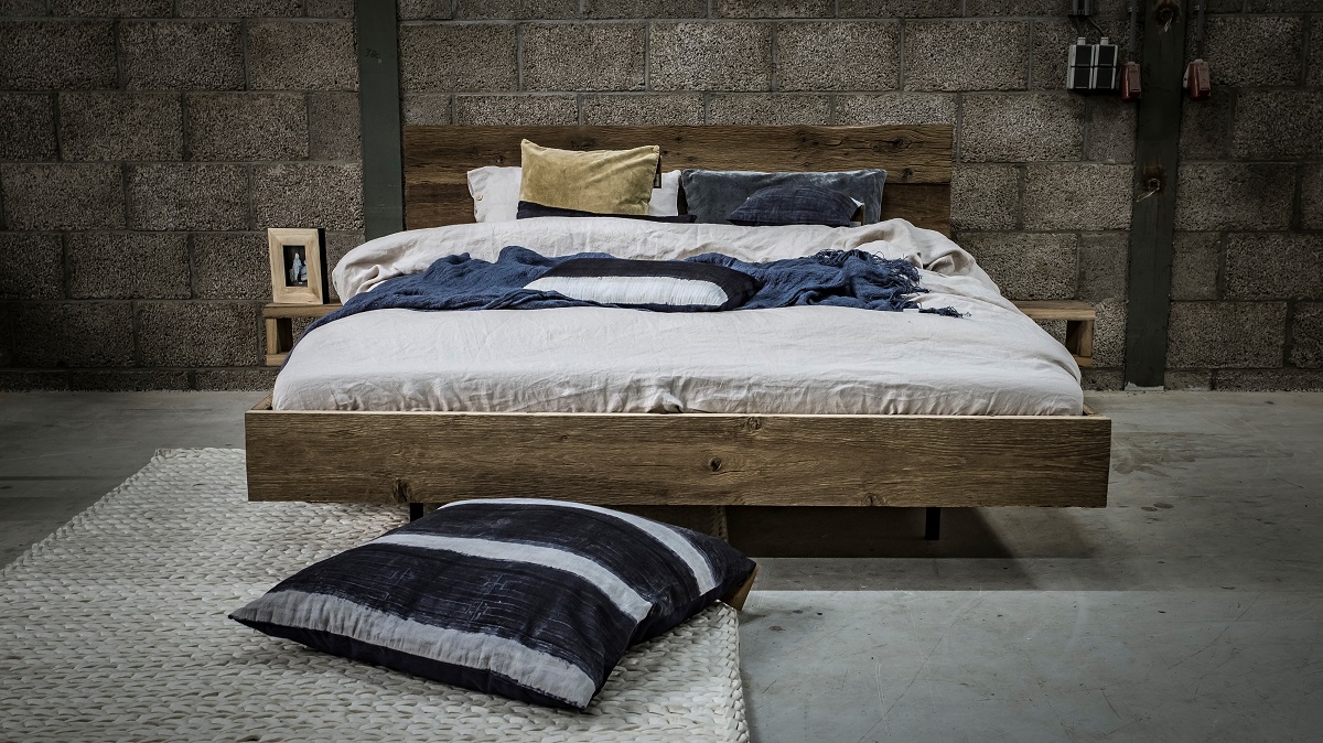 Zwevend bed gemaakt van oud eiken barnwood. De eiken balken zijn soms wel meer dan 100 jaar oud. De sporen van de jaren in het hout geven het bed een stoer karakter. Ooit als schuur nu dan eindelijk zijn rust gevonden als bed. Een mooi tweede leven. De oude eiken planken worden geborsteld. Het ruige en verweerde in het hout blijft behouden. Het oude eiken komt uit Oostenrijk voor de rest puur Nederlands product.