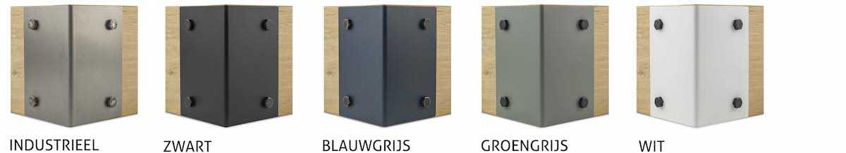 Op de foto’s is het bed afgebeeld met zwarte hoekprofielen. Je kunt eventueel ook kiezen voor industriele groengrijs, blauwgrijs of witte profielen.