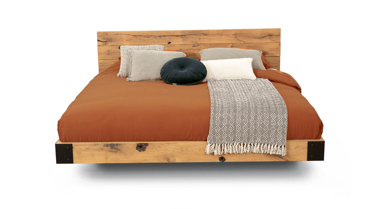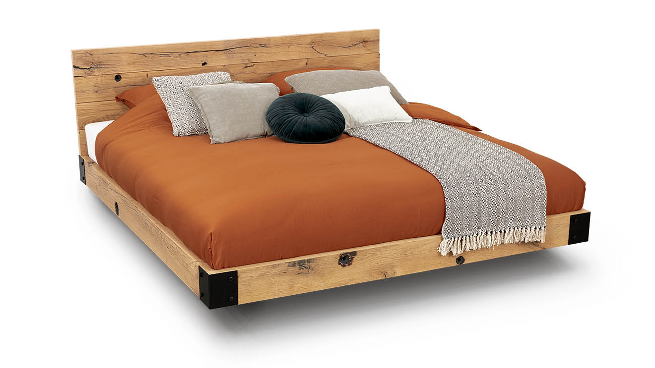 Zwevend houten bed van oud eiken