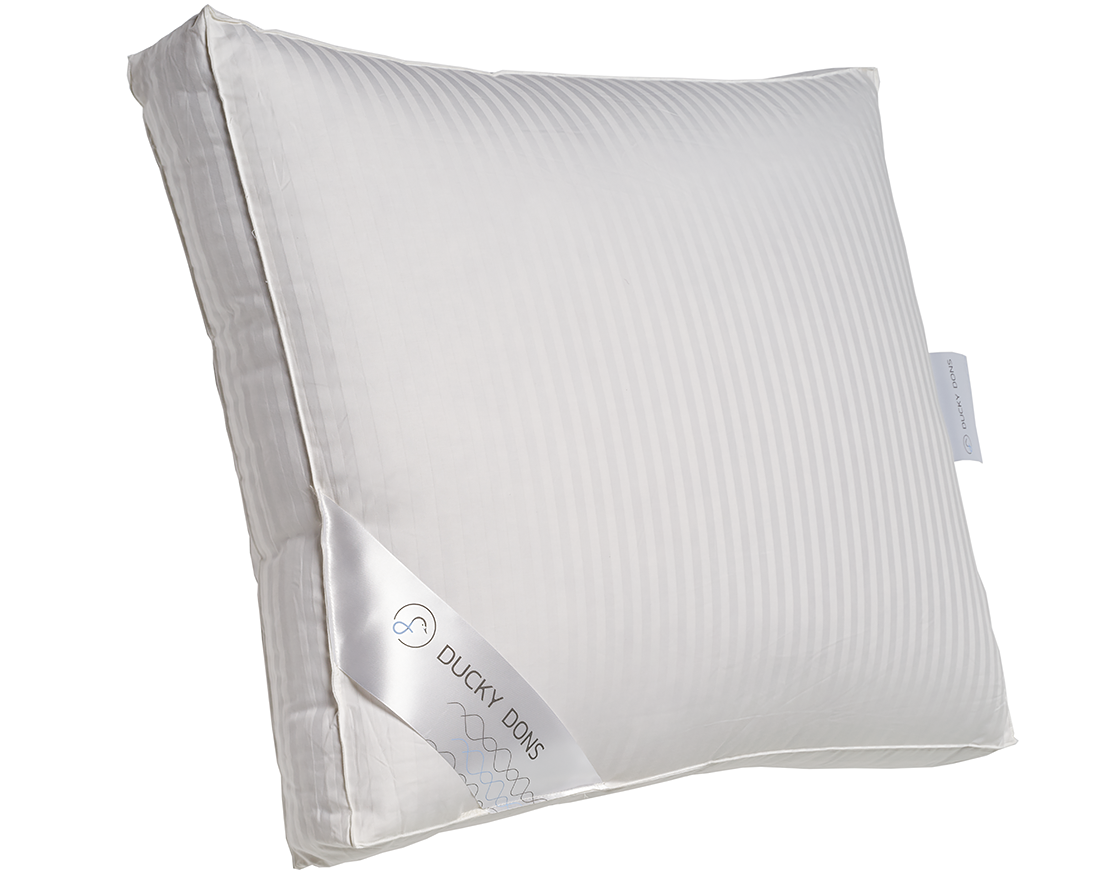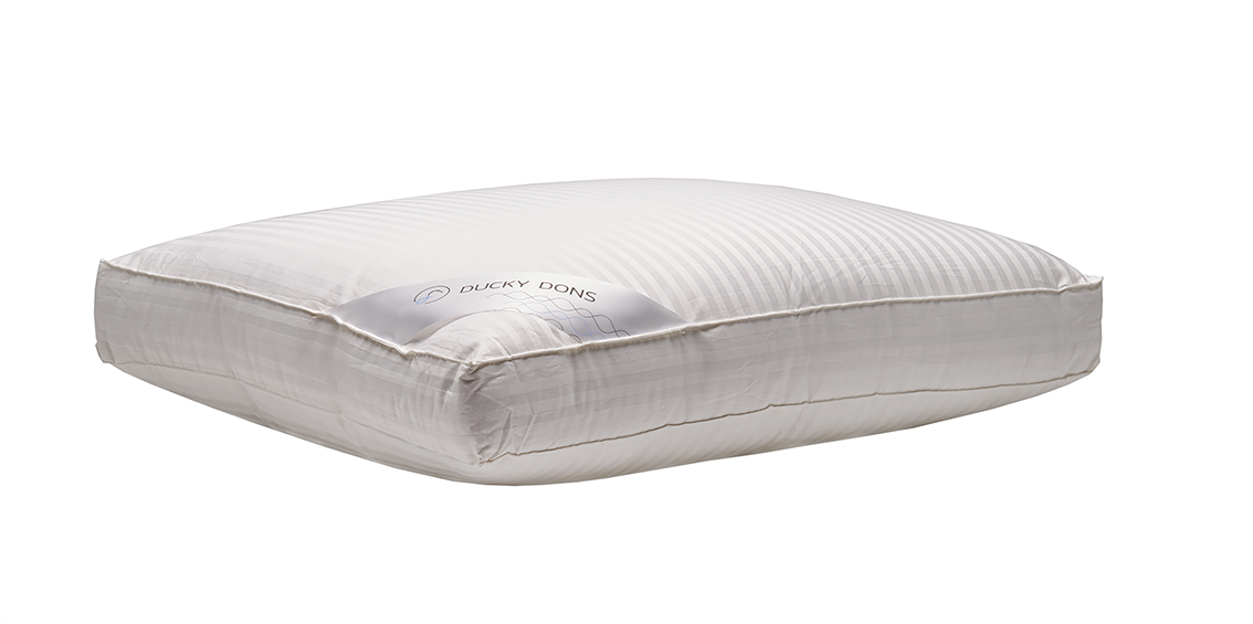 Box hoofdkussen van het merk Ducky Dons. Een heerlijk kussen dat is samengesteld uit 60% witte eendendons en 40% eendenveren. De tijk is van katoen. Het hoofdkussen ventileert goed en neemt gemakkelijk vocht op. Het kussen voelt wat zachter aan dan de versie met 15% eendendons