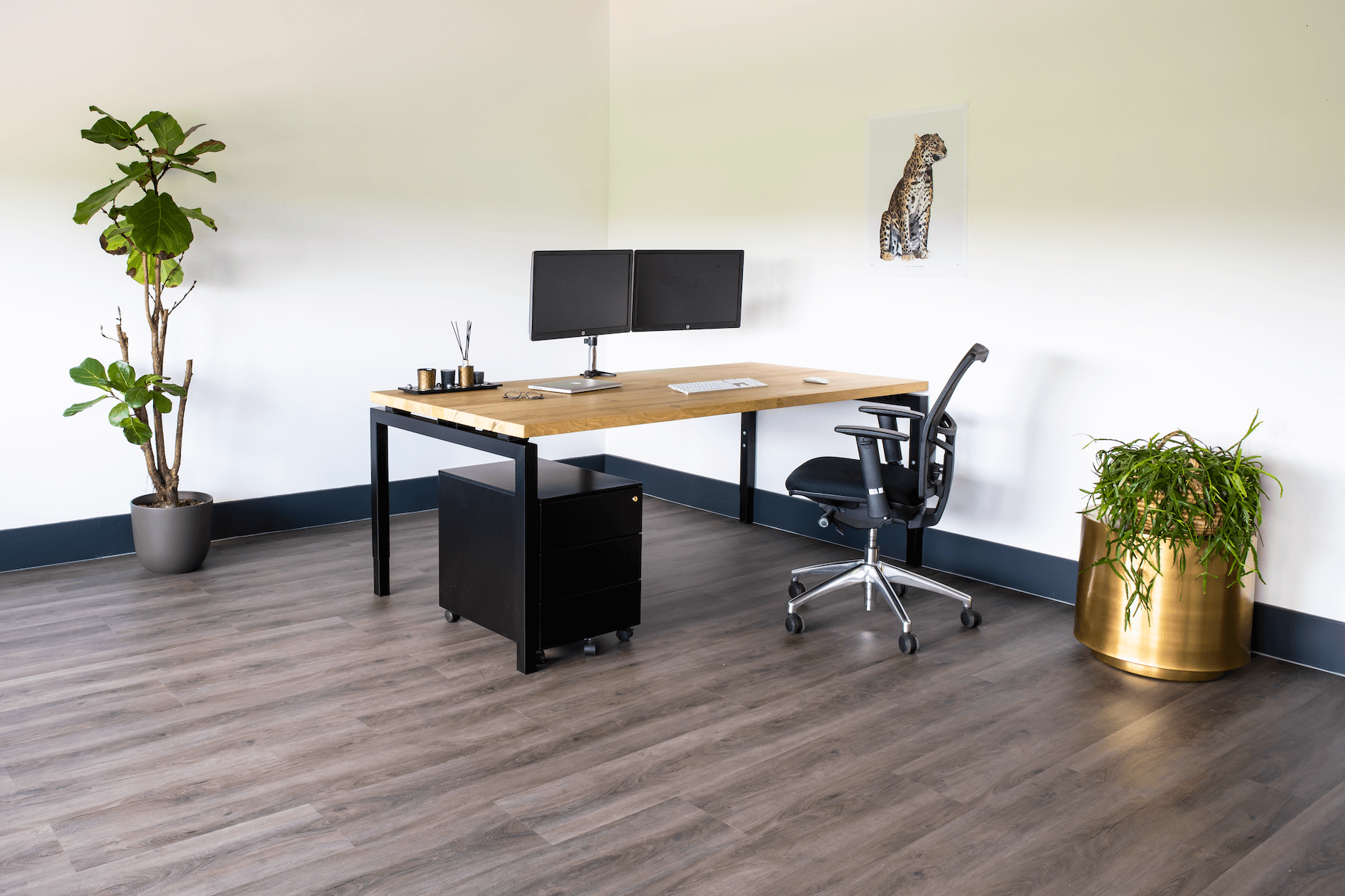 Massief Eiken bureaublad met in hoogte verstelbaar onderstel