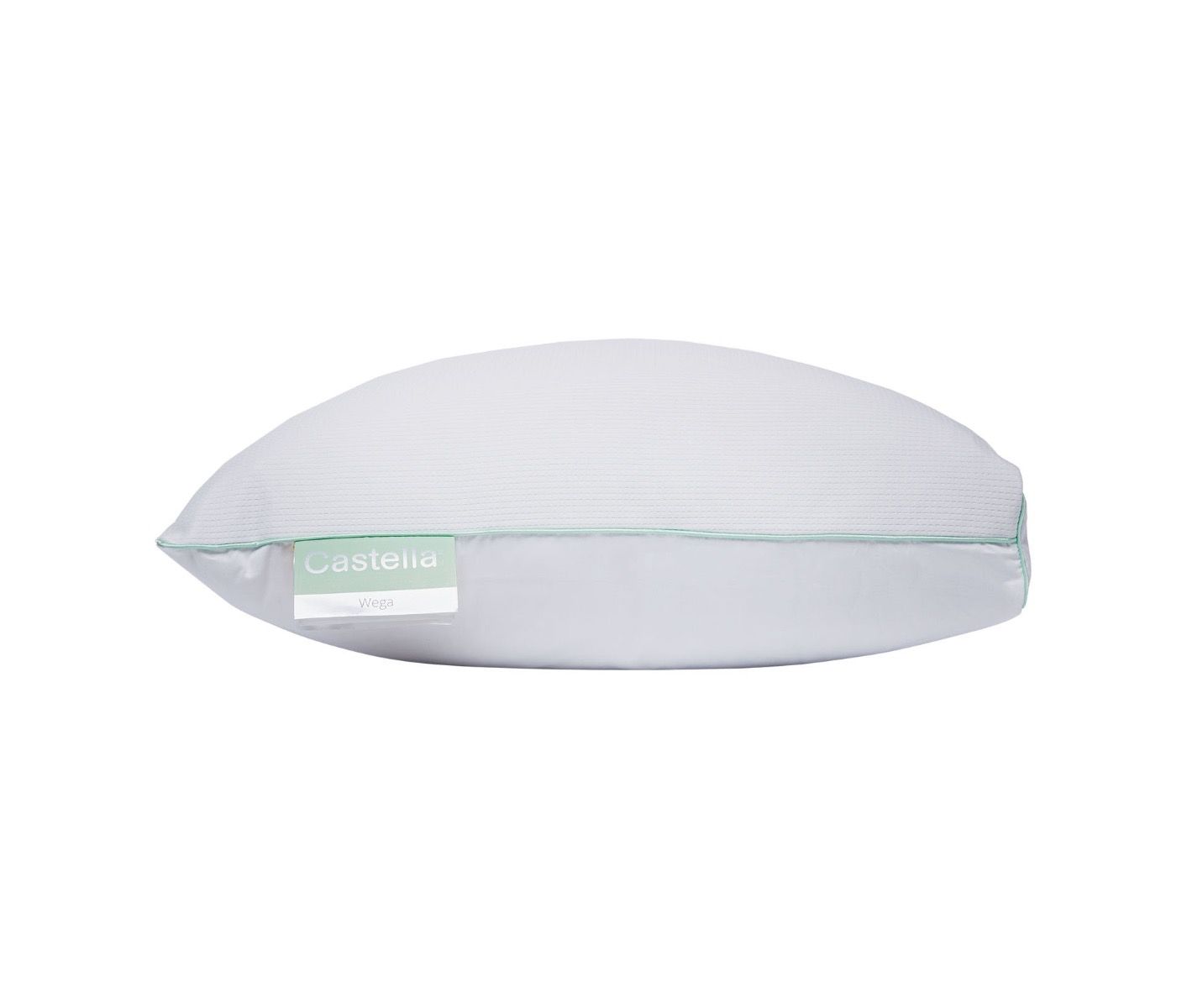 De Castella Wega is verkrijgbaar in zacht, medium en stevig. Kom langs in onze showroom en probeer welk kussen het beste bij je past.