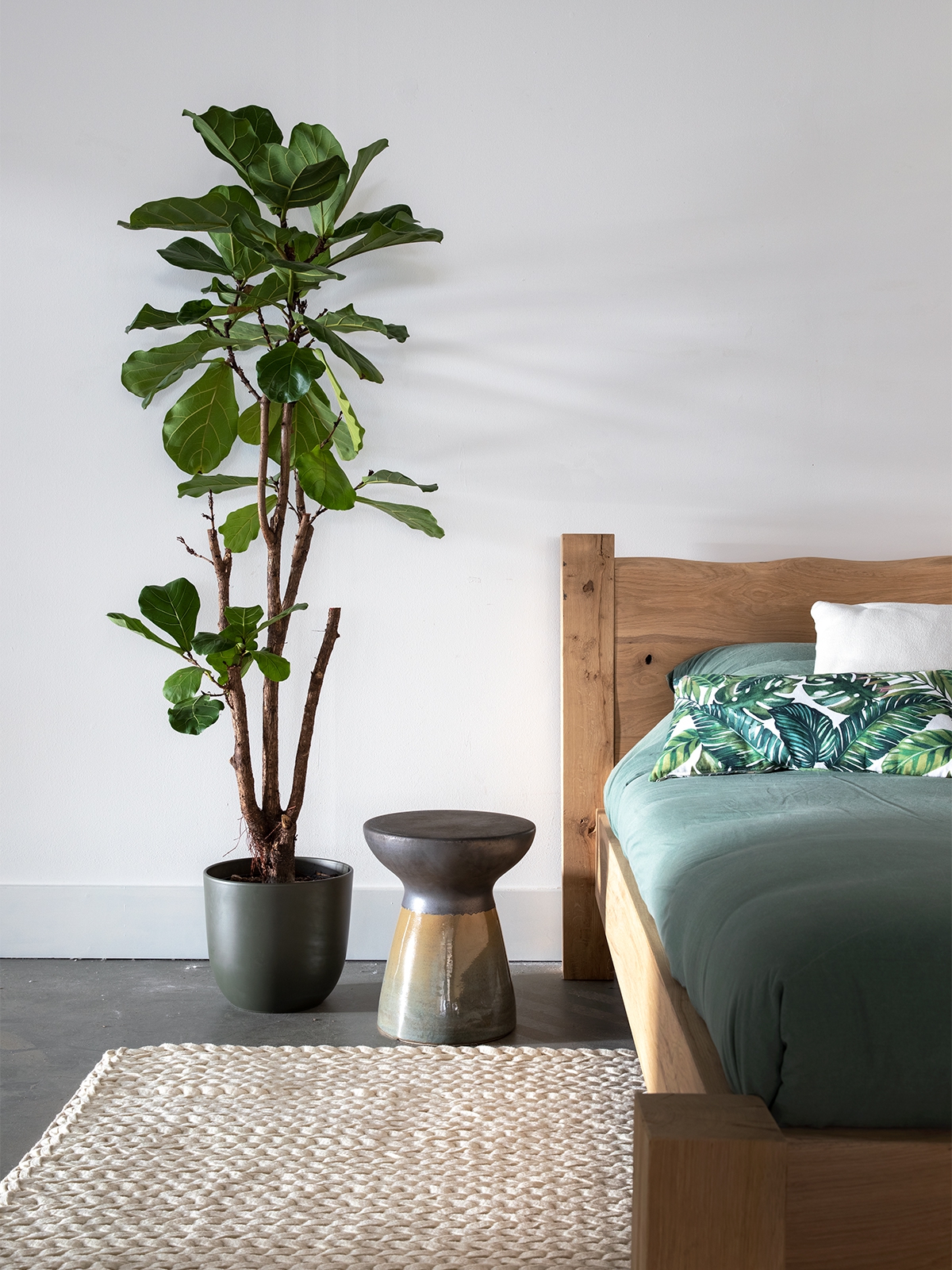 Het hoofdbord is gemaakt van eiken met een boomstam rand. Dat betekent dat het hoofdbord aan de bovenkant een natuurlijke welving heeft. Hoogte hooft ongeveer 80 cm