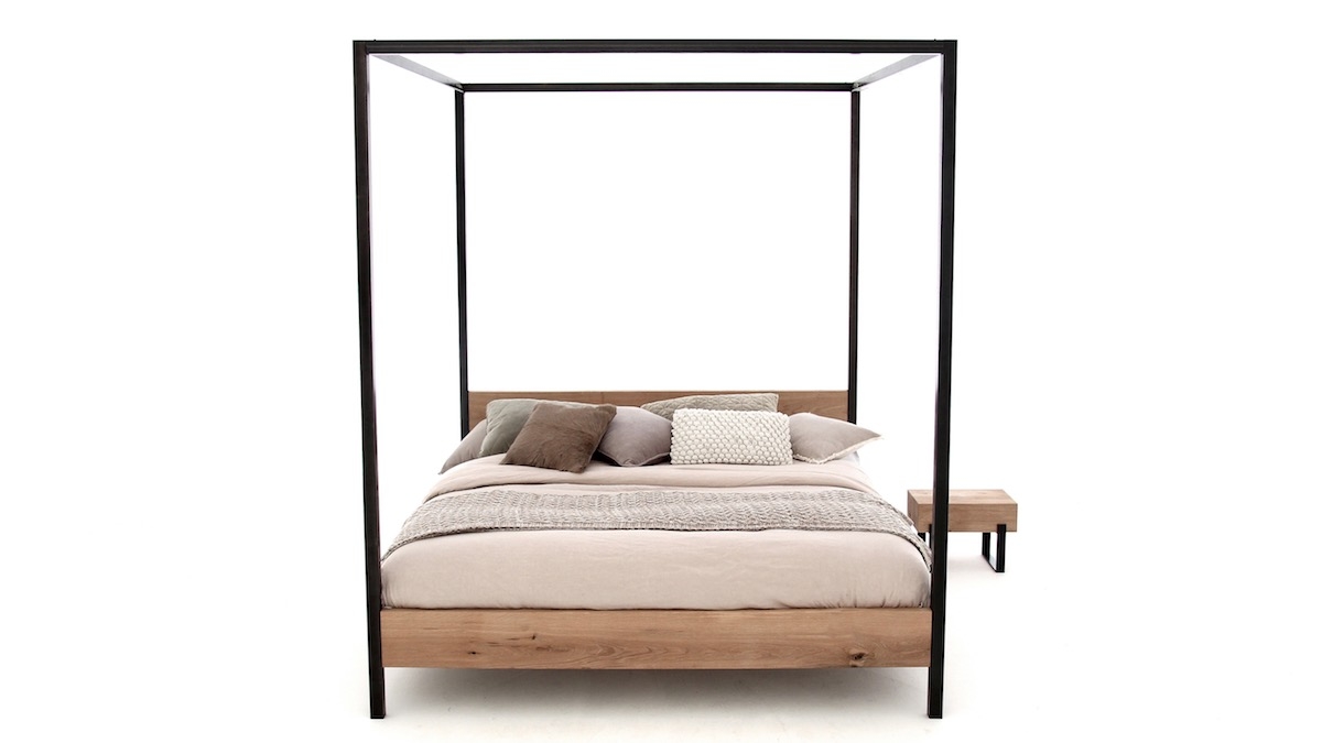 Gaaf bed toch. Wat moeten we daar nou eigenlijk nog aan toevoegen. Handgemaakt in Nederland van massief eiken balken die we van 52 mm mooi recht terug schaven naar 4 cm dikte. Voor een robuust en enorm stevig hemelbed. Het stalen frame van het bed is in verschillende kleuren leverbaar. Aan de onderzijde van de staanders zitten kunststof doppen. Het bed wordt geleverd exclusief lattenbodems. Een middenbalk wordt wel standaard meegeleverd.
