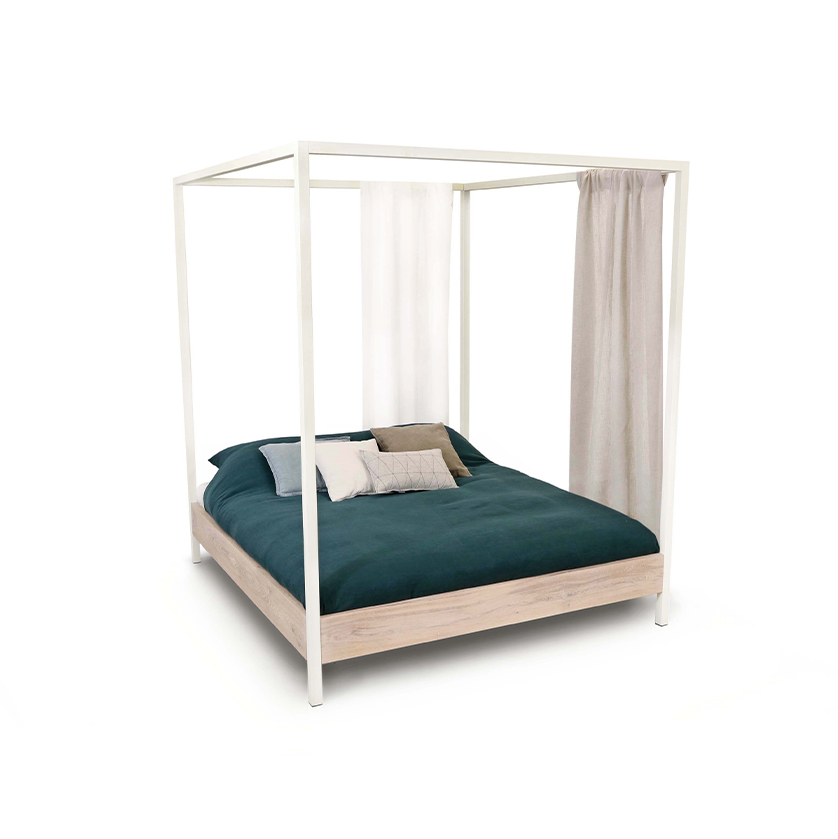 Gaaf bed toch. Wat moeten we daar nou eigenlijk nog aan toevoegen. Handgemaakt in Nederland van massief eiken balken die we van 52 mm mooi recht terug schaven naar 4 cm dikte. Voor een robuust en enorm stevig hemelbed. Het stalen frame van het bed is in verschillende kleuren leverbaar. Aan de onderzijde van de staanders zitten kunststof doppen. Het bed wordt geleverd exclusief lattenbodems. Een middenbalk wordt wel standaard meegeleverd.
