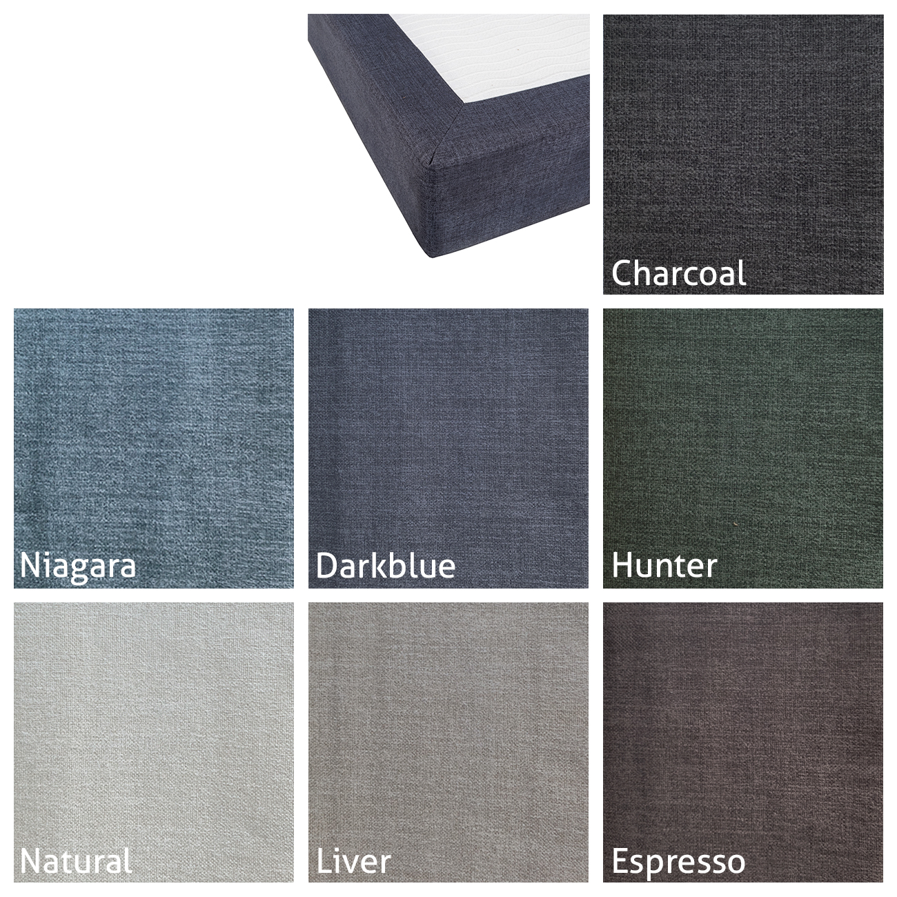 De gestoffeerde matrashoes is verkrijgbaar in de volgende kleuren: