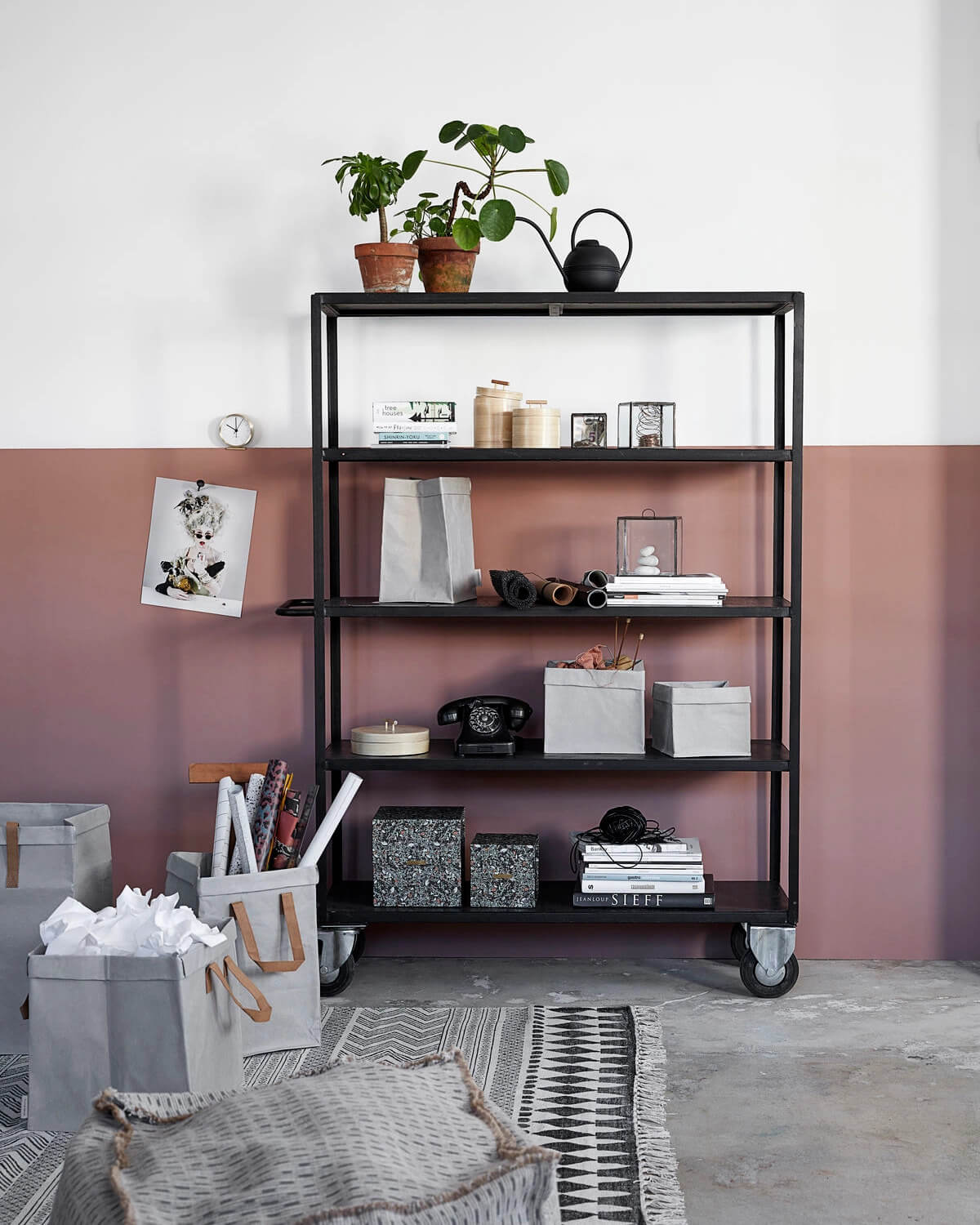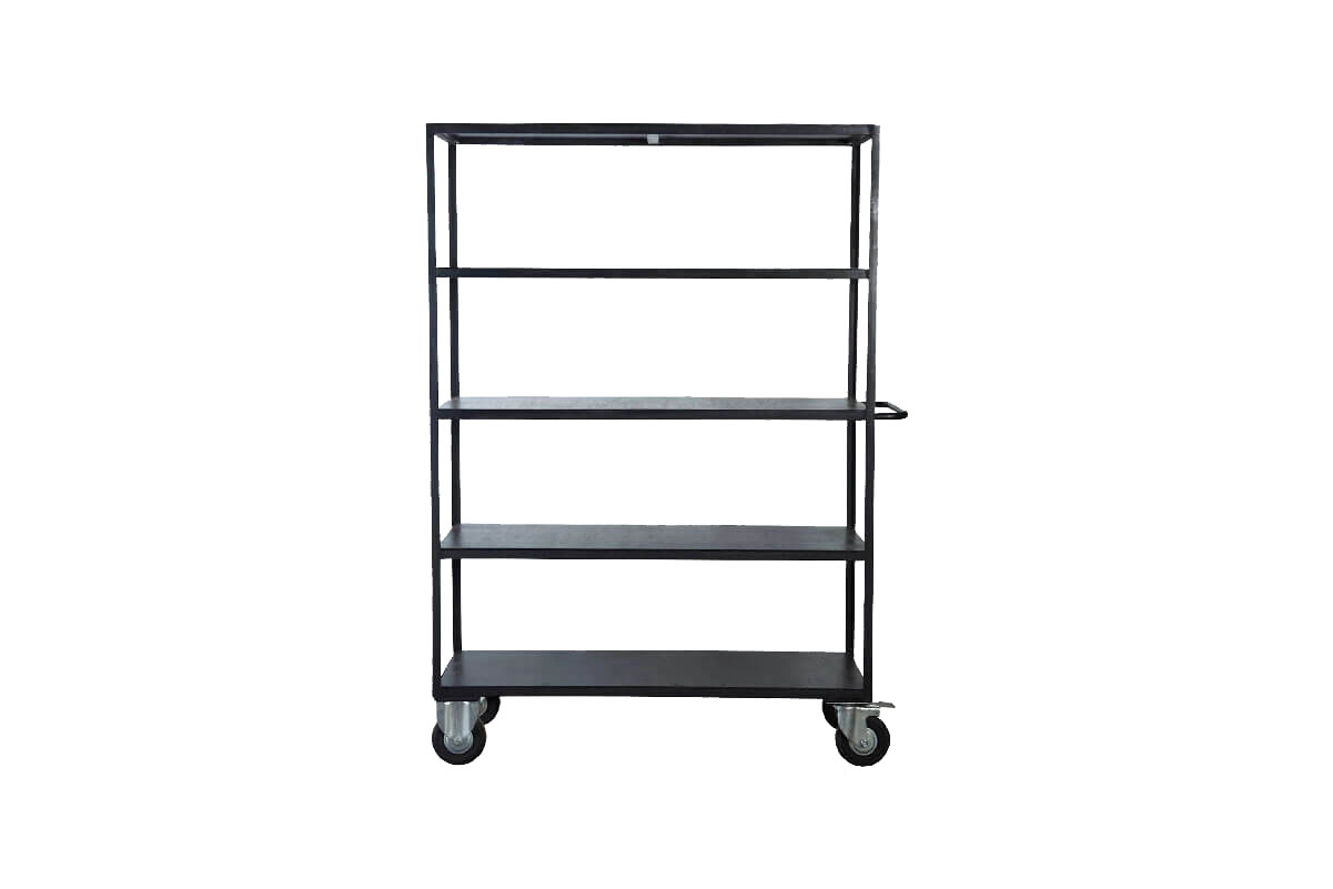 Deze stoere zwarte ijzeren stellingkast van House Doctor met 5 planken van 130 x 40 cm komt ook nog eens uitgerust met 4 wielen, waardoor deze makkelijk te verplaatsen is. Zo kan hij gemakkelijk een nieuwe huisje vinden in de woonkamer als boekenrek, of in de keuken om de kookboeken in het zonnetje te zetten. De 5 planken en totale hoogte van 175 cm bieden ruimte in overvloed om de kast op de voor jou perfecte manier te bekleden. Wanneer het perfecte plekje gevonden is kun je de trolley gemakkelijk op zijn plaats houden door middel van de 2 wielen die op slot gezet kunnen worden.