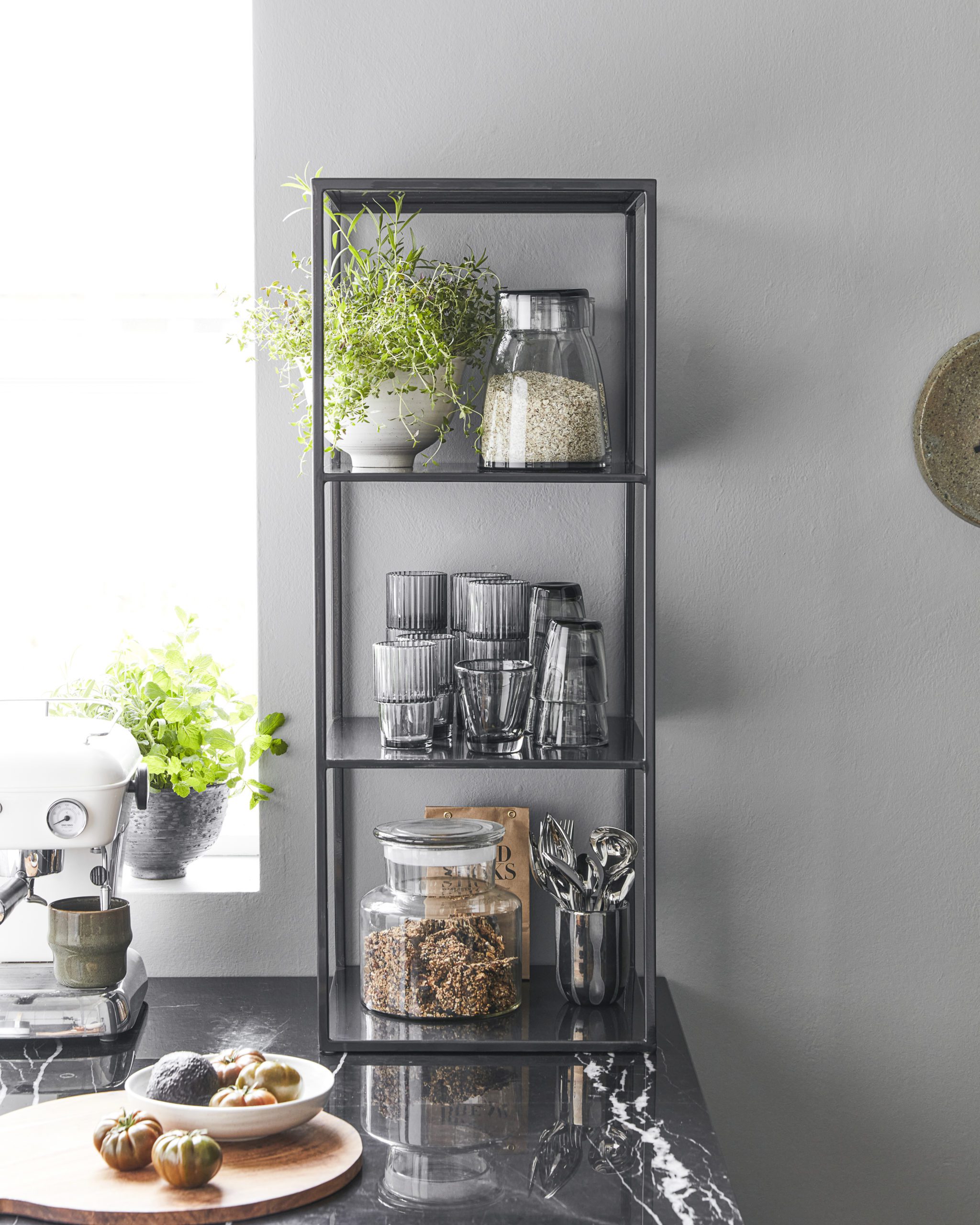 Dit strakke kastje van House Doctor is geheel gemaakt van ijzer wat hem een stoere industriële uitstraling geeft. Door zijn dunne profiel draagt deze, ondanks zijn robuuste zwarte kleur, op subtiele wijze bij aan bijvoorbeeld je karaktervolle keuken of woonkamer. Zo worden de simpelstje producten die zich op één van de verdiepingen bevinden, zoals een fles wijn of een leuk opbergdoosje, volledig in het zonnetje gezet.