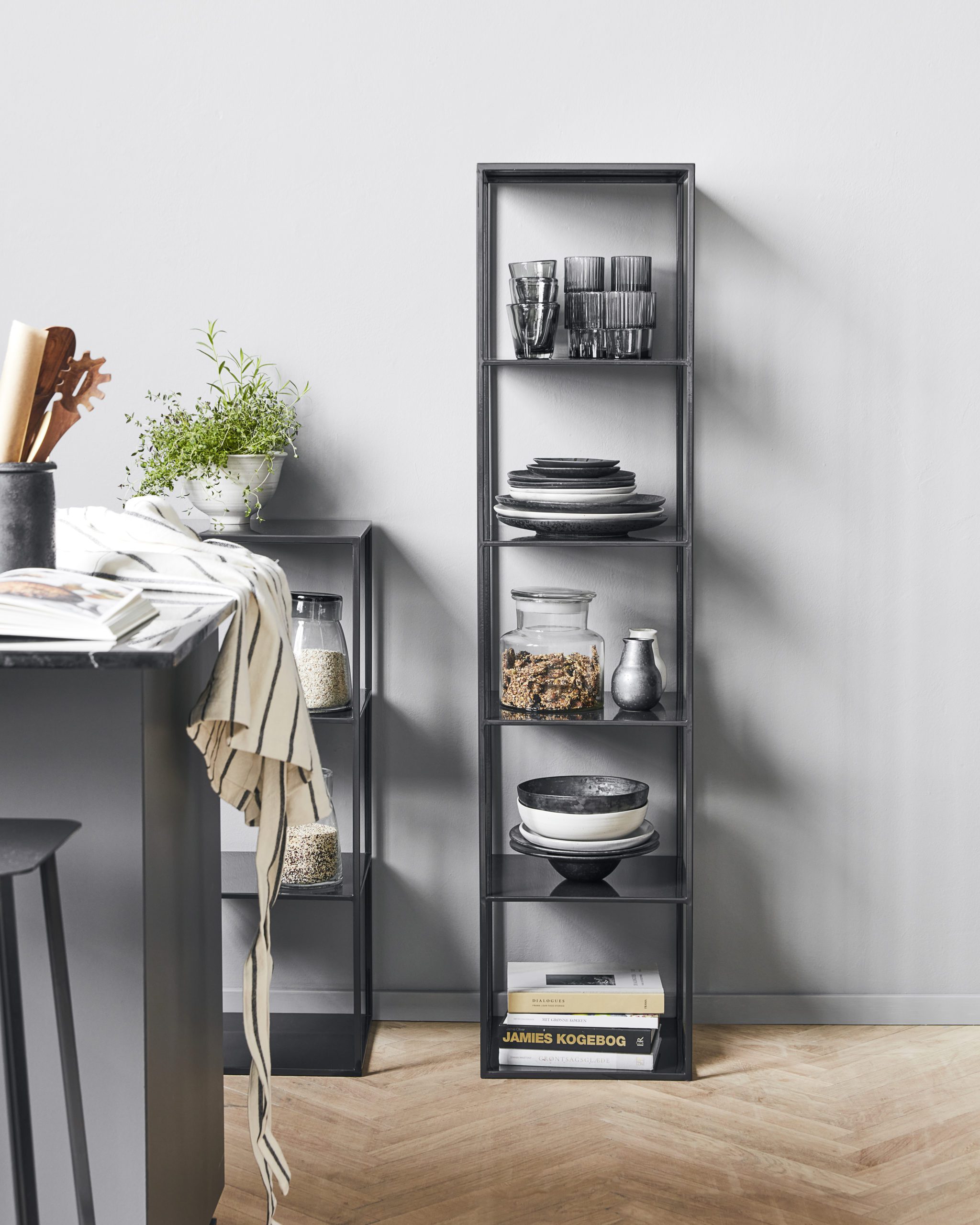 Deze strakke wandkast van House Doctor is geheel gemaakt van ijzer wat hem een stoere industriële uitstraling geeft. Door zijn dunne profiel draagt deze, ondanks zijn robuuste zwarte kleur, op subtiele wijze bij aan bijvoorbeeld je karaktervolle keuken of woonkamer. Zo worden de simpelstje producten die zich op één van de verdiepingen bevinden, zoals een fles wijn of een leuk opbergdoosje, volledig in het zonnetje gezet.