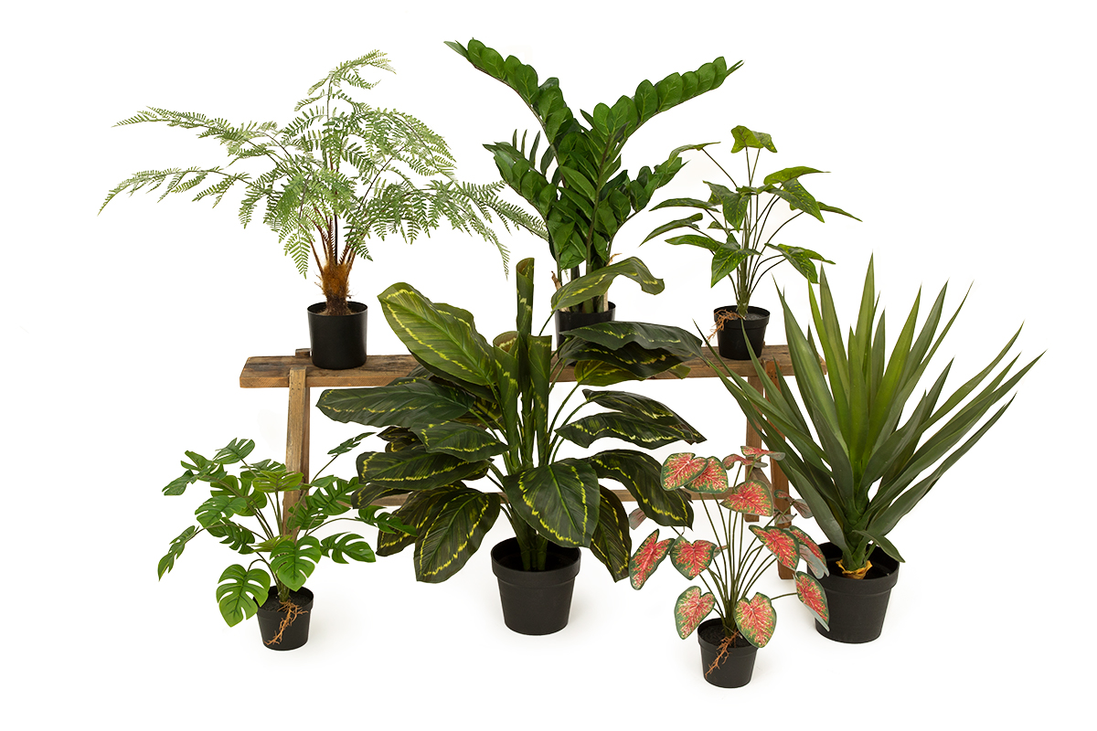De planten in dit pakket zijn hoogwaardige kunstplanten die bijna niet van echt te onderscheiden zijn.