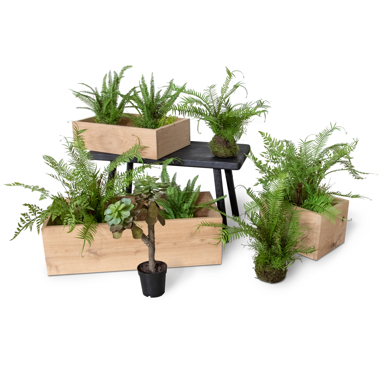 De planten in dit pakket zijn van het merk Silk-ka. De hoogwaardige kunstplanten worden met de hand gemaakt en zijn bijna niet van echt te onderscheiden.
