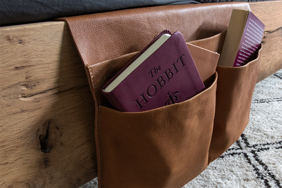 Door de flap aan de achterkant van het tasje is deze gemakkelijk aan het bed te hangen tussen het matras en het bedframe.